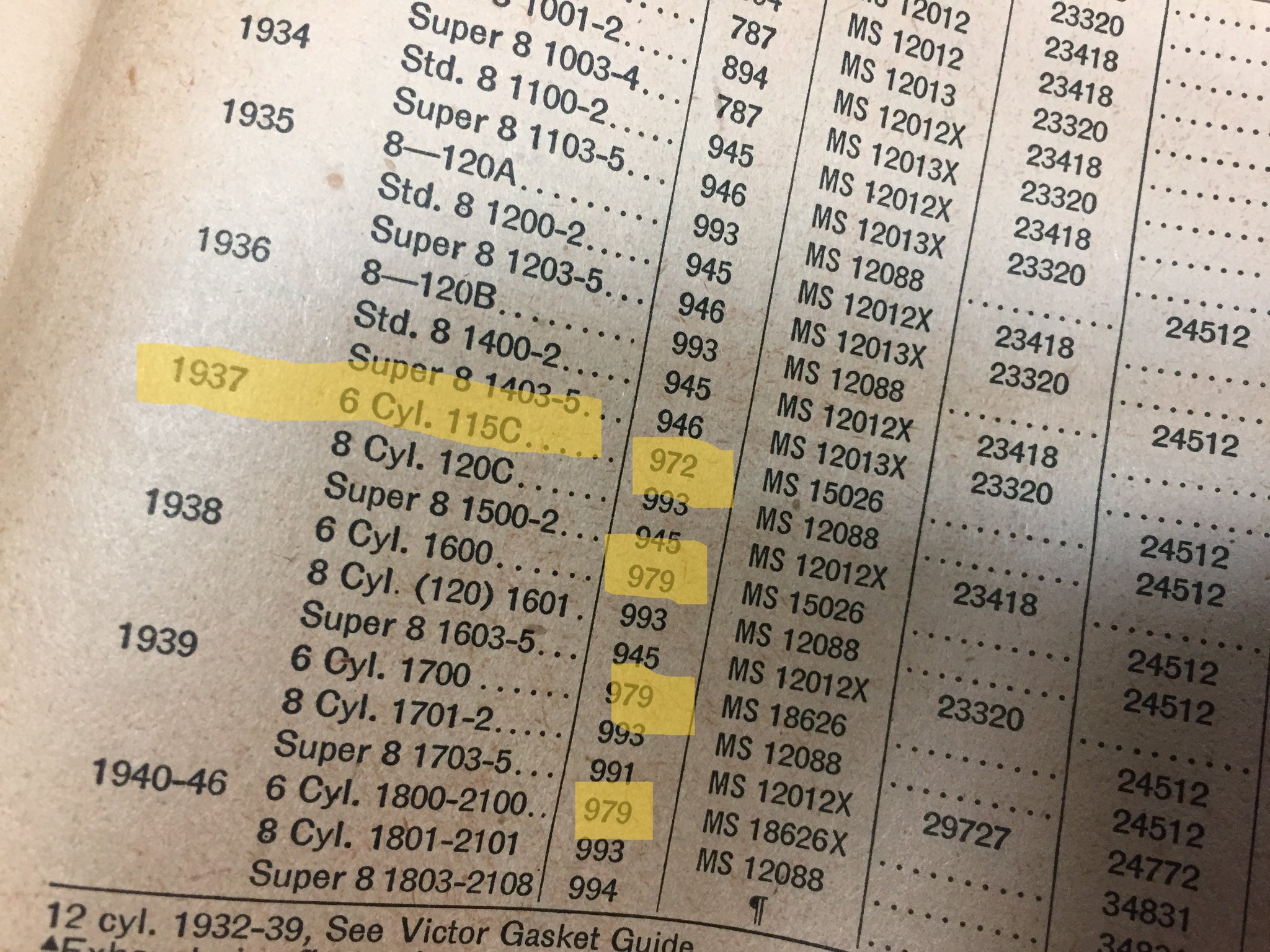 head gasket Victor #972 = Packard 1937 6 cyl 115c