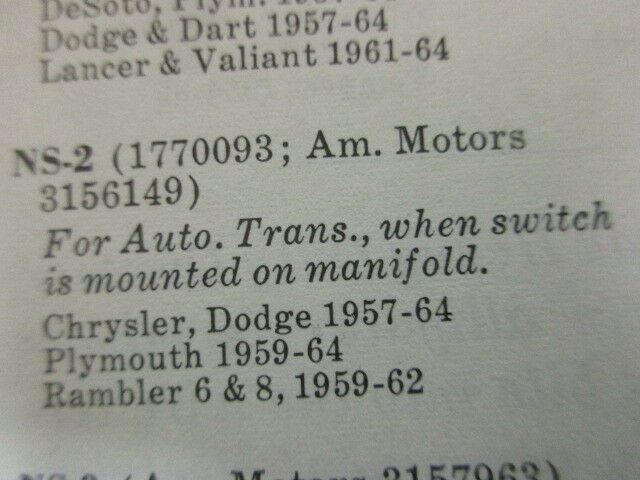 Chrysler Imp. Dodge Plymouth Rambler 57 58 59 60 61 62 63 64 neutral swicth shipping include
